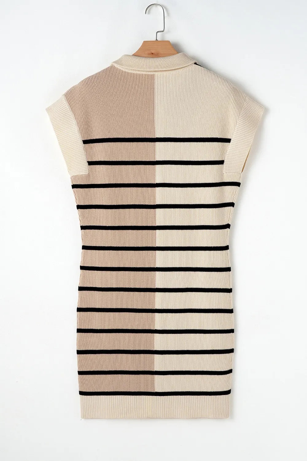 Striped Quarter Zip Cap Sleeve Sweater Dress